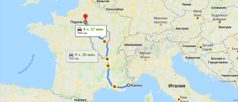 Так как в Каннах я была за рулем арендованного автомобиля (я уже не помню, где арендовала, что-то типа подобного сайта), то и в Париж решила отправиться своим ходом. Конечно, ехать далековато, между городами расстояние аж 900 километров. В принципе, часов за 9–10 вполне можно добраться.