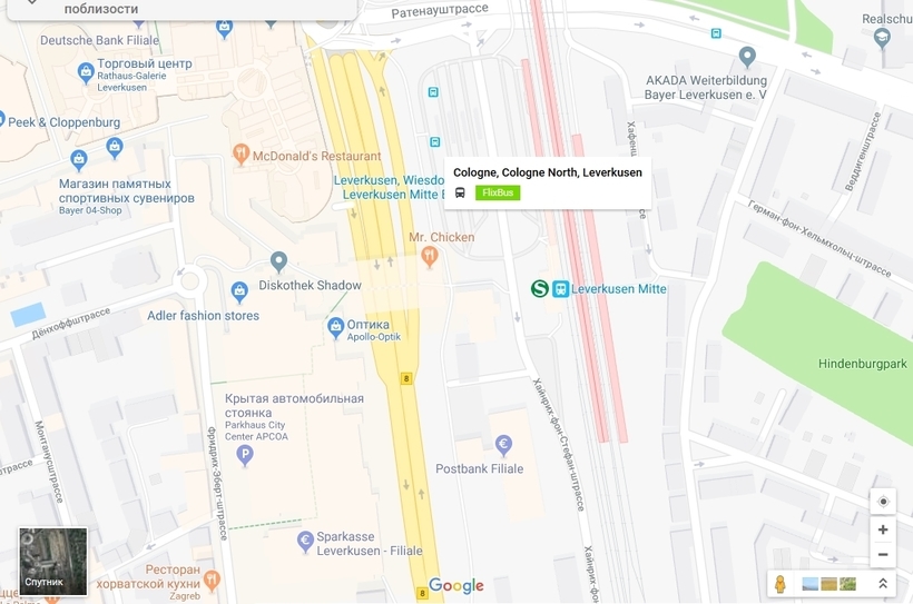 - в 11 утра до остановки Cologne North, Leverkusen;