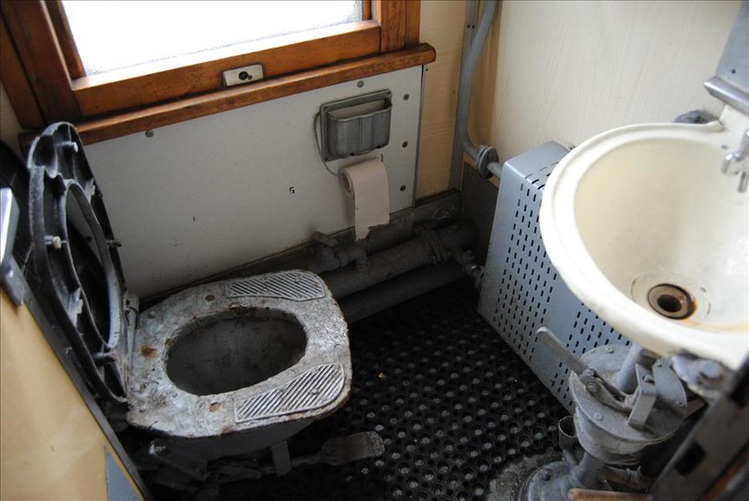 Туалет был, мало того, что старый, так еще и довольно грязный. Про вонь тоже говорить не буду. Проблема была еще и в том, что вместе с ногами посетителей грязь из туалета перекочевала в вагон.