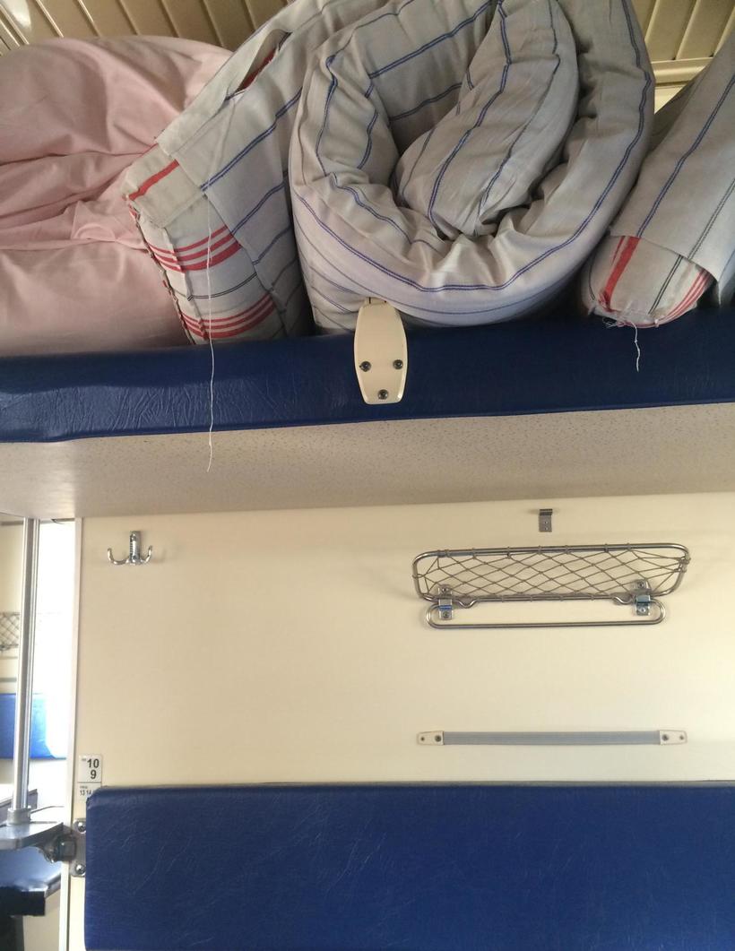 Обивка на сиденьях явно заменена. На верхних полках добавили специальные держатели, дабы никто не падал с верхнего «этажа».