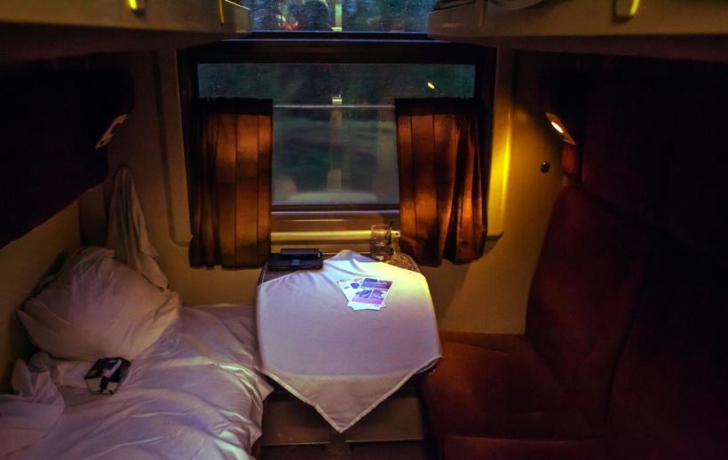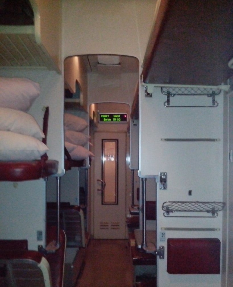 Ночью свет по вагону централизованно выключается, остается лишь маленькая лампочка над головой. Включить свет в своем отдельном купе нельзя.