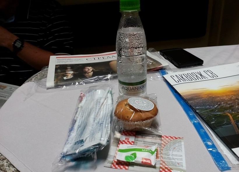 Кроме того, все получили дорожные наборы (салфетки, ложка для обуви, зубная паста и зубная щетка), а также набор еды и порцию горячего питания. Разумеется, имелся кондиционер. Свет в купе регулировали сами пассажиры, кроме того, были индивидуальные светильники.