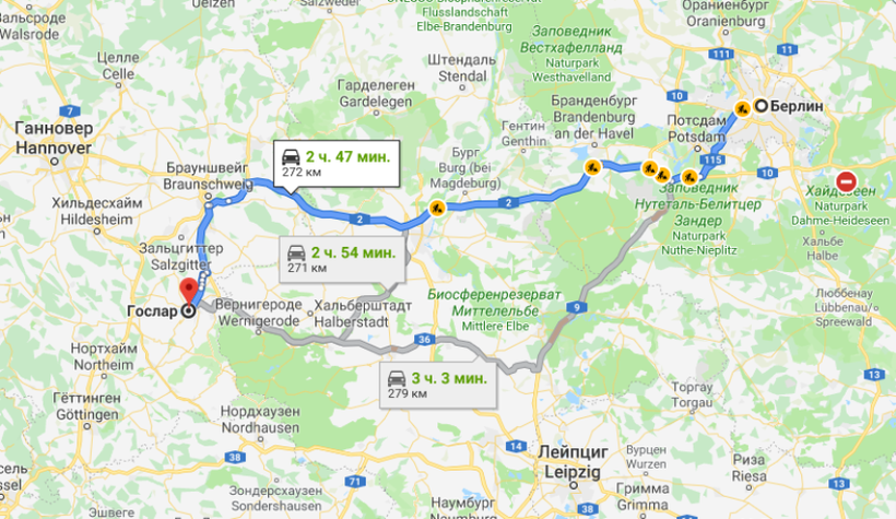 Путь из Берлина в Гослар лучше всего проехать следующим образом: