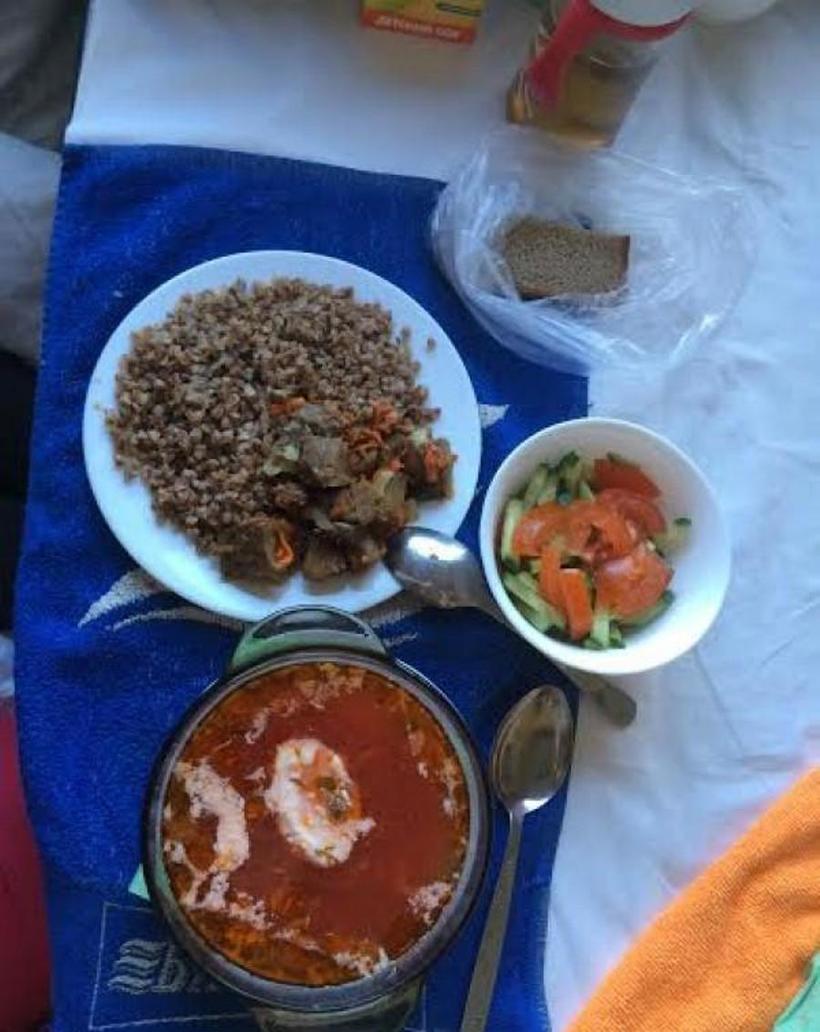 Я заказал себе дополнительный бизнес-ланч из вагона ресторана, вот, как он выглядел: