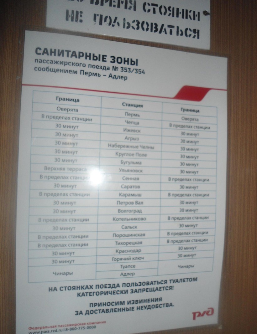 Пожалуй, главным неудобством во время поездки были санитарные зоны. С нетерпением жду, когда все поезда переоборудуют биотуалетами!