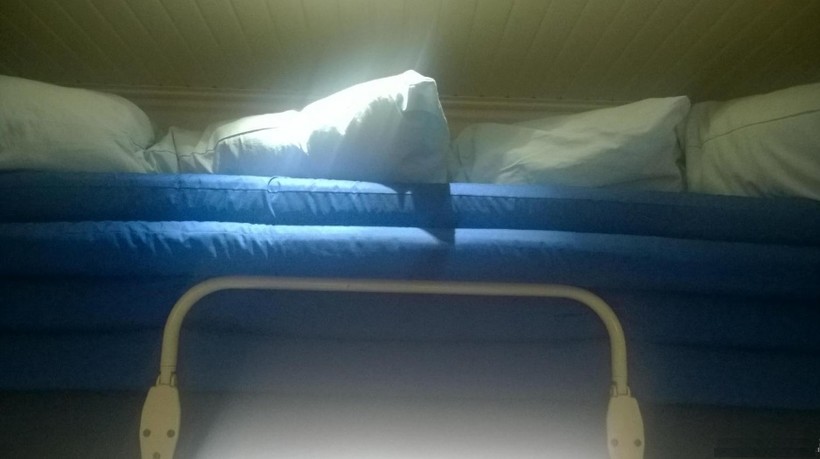 Постельное белье было аккуратно запаковано и лежало по местам. Приятно порадовали и даже удивили легкие матрасы, а не те привычные полосатые тяжеленные монстры, которых мы привыкли их видеть в поездах.