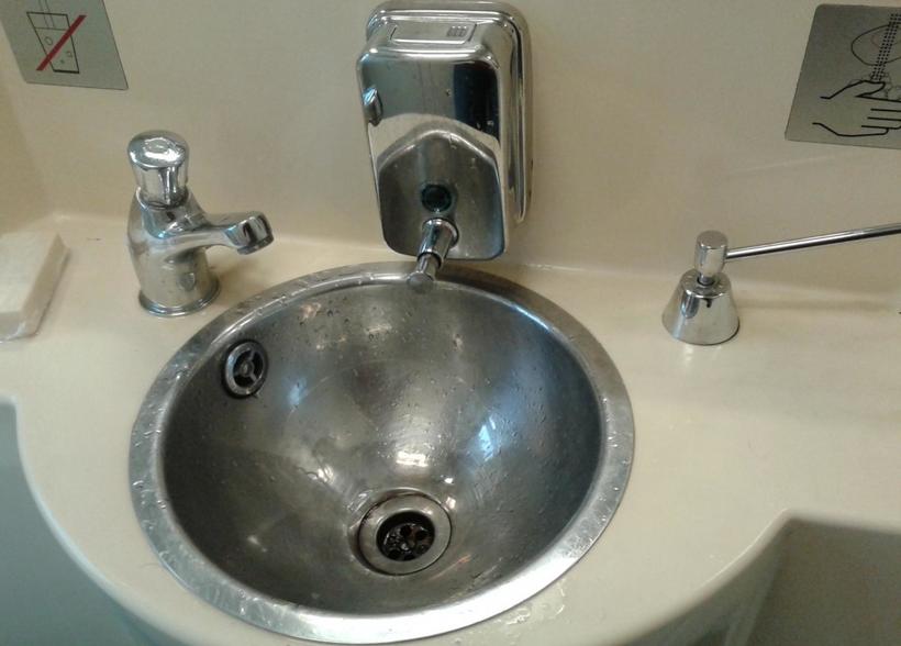 Еду я заказывать не стал, а вот туалетом воспользовался. Кроме собственно биоунитаза, там был еще вот такой красивый умывальник:
