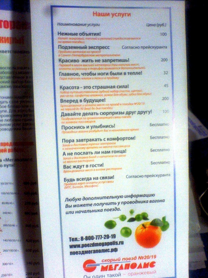 - Завышенные, на мой взгляд, цены в вагоне ресторане.