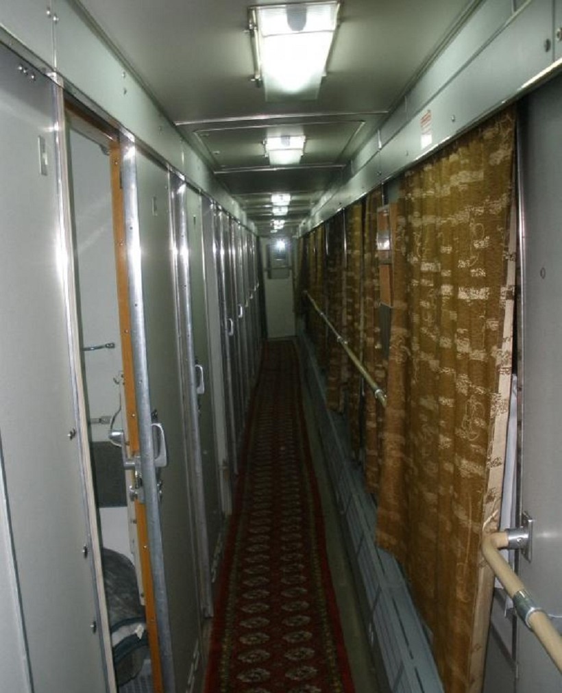 Вагоны старые, разве что, поменяли в них окна. Внутри относительно чисто, постелена дорожка в проходе. Из плюсов могу назвать только то, что постоянно была вода в титане и рабочие розетки.