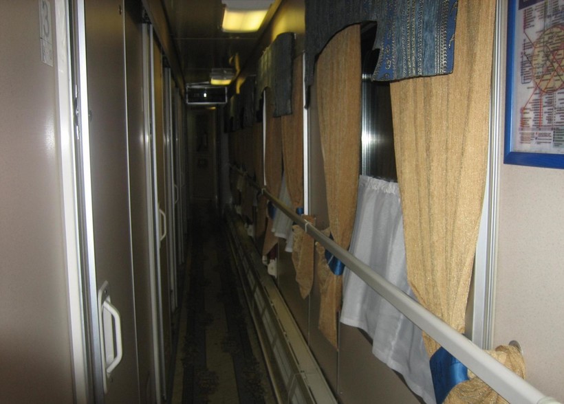 Есть вагоны, в которых в каждом купе были телевизоры. Наш вагон был не настолько шикарным, также в нашем купе не было розеток, они установлены в коридоре.