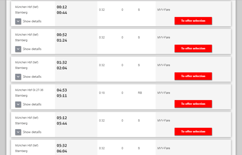 Все виды билетов можно купить через интернет, кроме одноразового билетика. Тикеты продаются на сайте национального перевозчика или на страничке общественного транспорта Мюнхена. А одноразовые билеты легко приобрести в автоматах MVV, которые установлены не только на вокзалах, но и по всему городу (на остановках, возле метро и пр.).