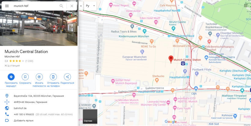 Все поезда отправляются от главного ж/д вокзала Мюнхена.