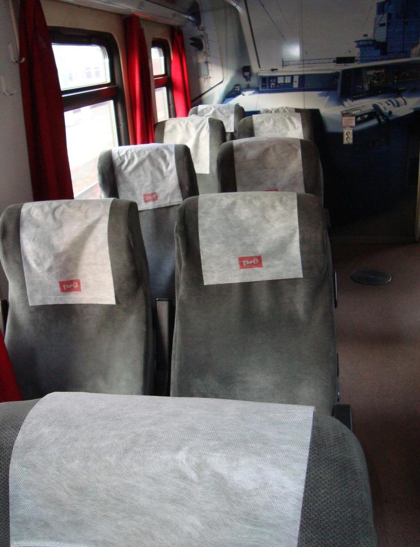 Крупным минусом вагона я бы назвал чистоту, вернее, ее отсутствие по отношению к чехлам и подголовникам. Выглядят они, мягко говоря, неважно, а многие чехлы откровенно грязные.