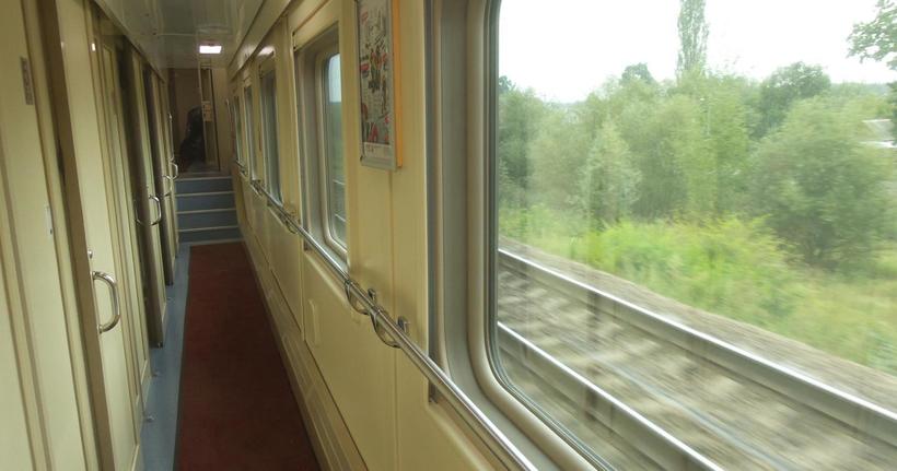 Мой поезд был не просто фирменным, а еще и двухэтажным. Коридор на моем этаже выглядел вот так: