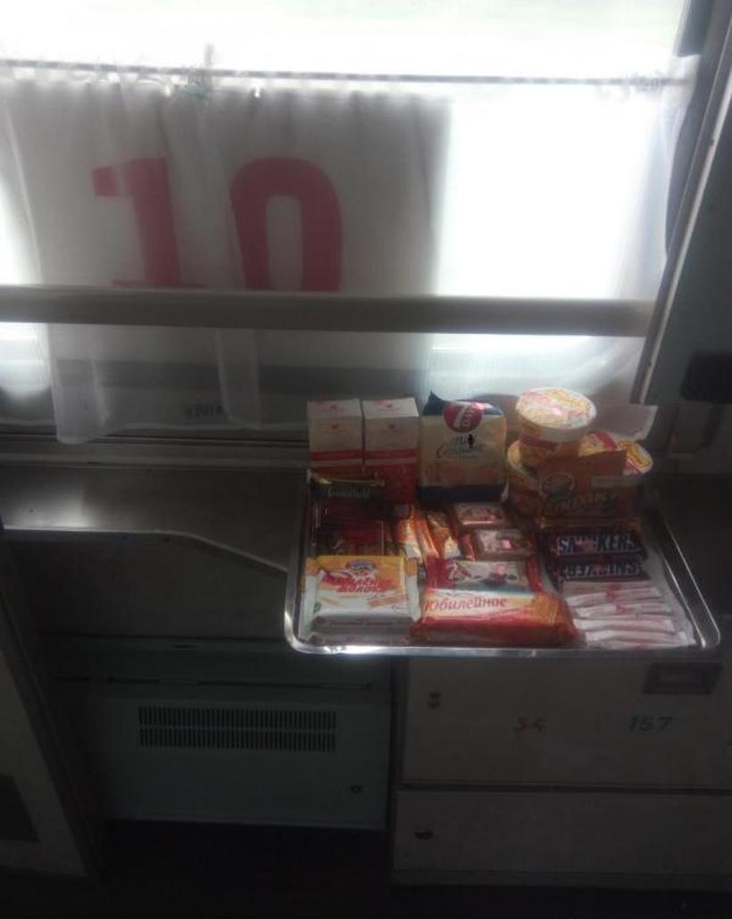 Вагона-ресторана в составе поезда не было, поэтому можно купить у проводника вот такие вкусняшки: