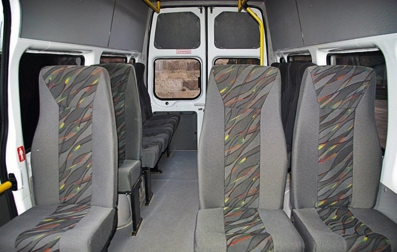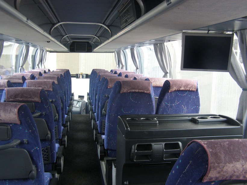 В салоне есть кондиционер, шторы и удобные мягкие кресла.