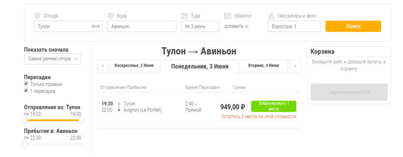 Ниже приведена информация о том, сколько часов вам потребуется, чтобы добраться от Тулона до Авиньона, а также приведена примерная стоимость проезда (средняя цена билета) на том или ином виде транспорта.