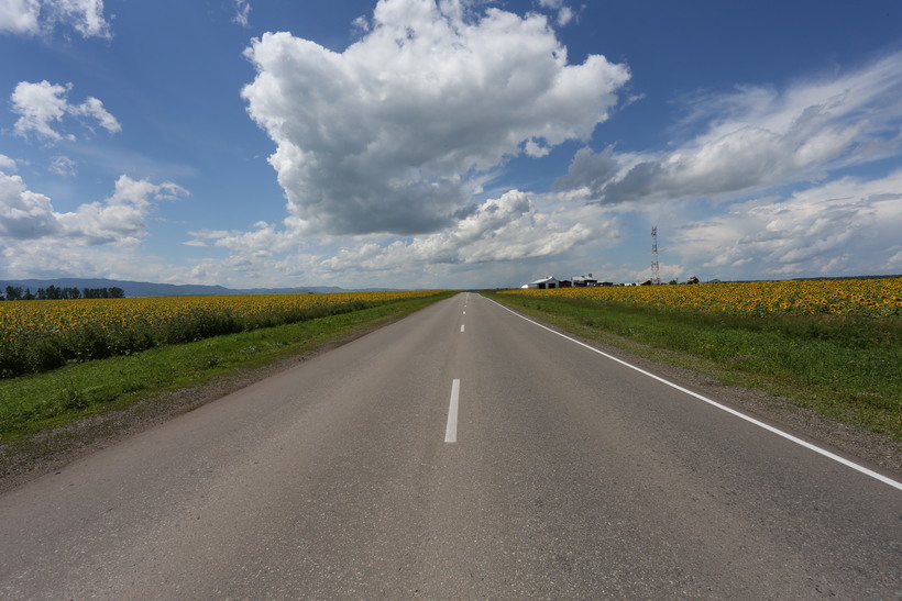 Сама дорога из Белокурихи в Бийск хорошая, асфальтированная, двухполосная. Остановок в пути нет. Населенных пунктов мало. В основном, за окном красивые пейзажи с холмами и полями подсолнуха и гречихи. В небе парят ястребы. На горизонте синеют горы. :) Время до Бийска пролетело незаметно.