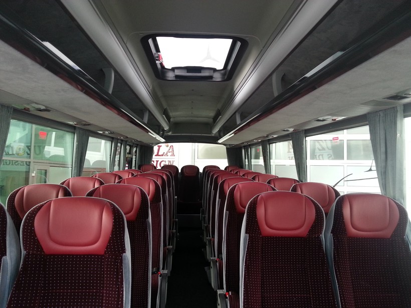 В салоне были весьма комфортно. Кондиционер постоянно освежал воздух, после часов посиделок в кресле ничего не болело. Что ещё требуется для поездок в автобусе?