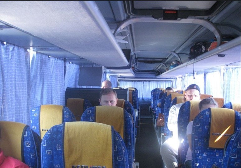 Бывалые попутчики говорили, что нам очень повезло, что в этот субботний день был подан бус чешского перевозчика. Иногда приезжает транспорт гродненской компании Intaks с белорусскими номерами и типичным советским интерьером салона, ехать в котором сплошное мучение.