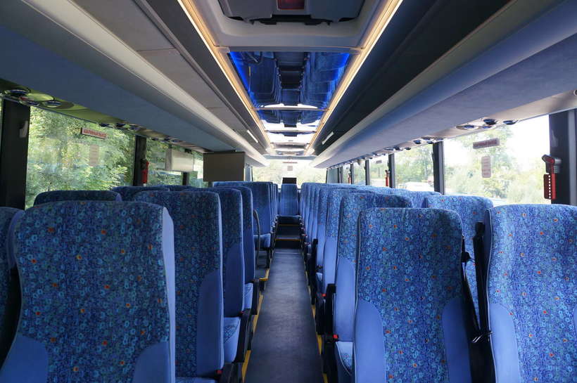 Ехать в таком автобусе летом достаточно сложно. Подышать свежим воздухом можно было только на остановках, которых было немного. Хотя, были и такие, где можно выйти прогуляться, что-то перекусить, сходить в туалет с нормальными условиями.