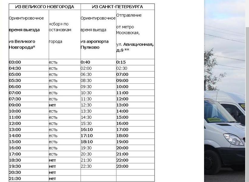 Автобусы и маршрутные такси в Санкт-Петербург отправляются с автостанций города Великий Новгород: