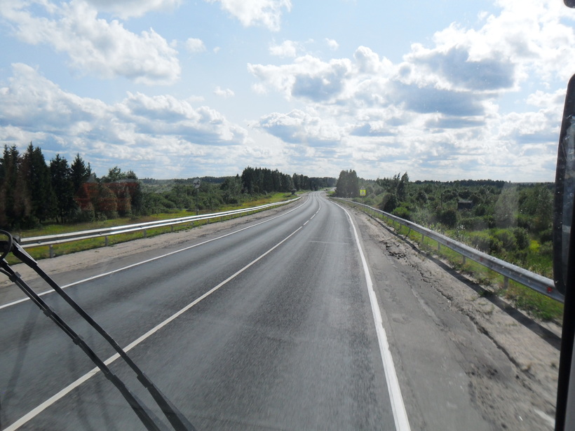 В общем, выехали мы без опозданий. Был открыт люк, так что потока свежего воздуха хватало, чтобы не чувствовать себя, как в бане. Дороги до Иваново хорошие - обычно новые двухполосные трассы, так что водитель без проблем держал скорость в районе 90-100 км/ч. Где нужно - снижал. В общем, было заметно, что ездит он здесь далеко не первый раз. Когда узнал, что кондиционер неисправен, очень сомневался насчет того, что поездка будет комфортной, но примерно через полчаса поймал себя на мысли, что в салоне достаточно прохладно. Одного открытого люка действительно хватало, чтобы охлаждать салон, поразительно! В общем, в Иваново мы приехали без опозданий, никаких пробок по дороге не было, дороги были отличными. Также отмечу, что автобус по пути не ломался. Поездка мне понравилась, с удовольствием съездил бы ещё раз, природа здесь очень красива! Отмечу понравившиеся моменты: