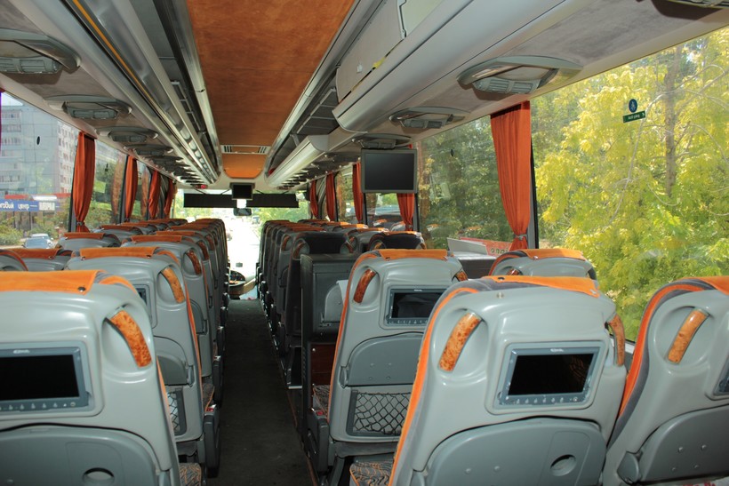 Сразу отметил большое количество места под багаж, наличие телевизора, кондиционера, а также неплохих кресел. Ну, и чистоту в салоне, что тоже очень приятно.