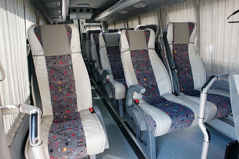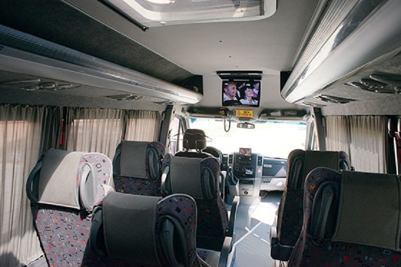 Ехали на микроавтобусе Фольцфаген Крафтер, все пассажирские места были заняты. Водитель сразу предложил мне поместить достаточно габаритную сумку в багажный отсек, за багаж дополнительно я ничего не платила. В салоне было чистенько и достаточно комфортно. Пассажирские кресла раскладывались, ничуть не хуже, чем в огромных туристических автобусах.