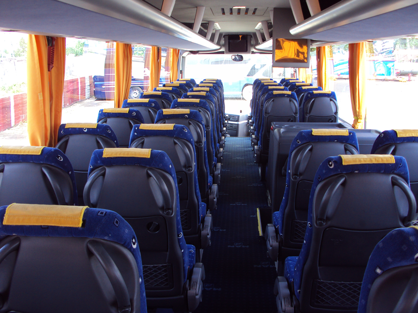 Поднявшись в салон, сразу заметил наличие кондиционера, а также удобных мягких сидений.