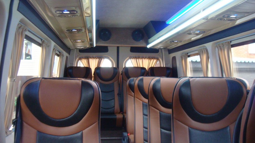Салон выглядел как-то так, проход был узким, что было не очень удобно. Но так как выходить требовалось совсем не часто - этот минус оказался незначительным. Кресла были откидными и весьма удобными. Был кондиционер, а также занавески от солнца.