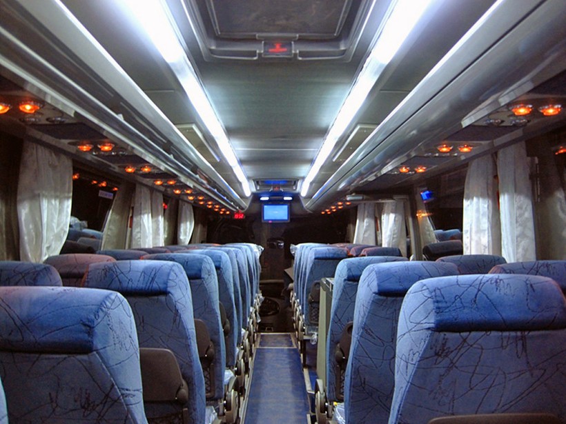 Водителю я поставил бы памятник, потому что зайдя в салон почувствовал истинное блаженство — теплота.... Печки работали идеально, и я отогрелся минут за десять уже. Пассажиры уже спали, но я нашёл своё место легко — точечная неоновая подсветка давала достаточно света. Не смотря, что сумки заняли много места, я устроился в своём кресле удобно, типа «полу калачиком». Вообще салон был большим и уютным, что-то наподобие этого.
