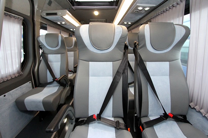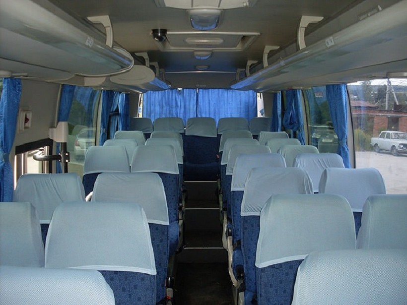 Сидения откидные и мягкие, даже можно подремать в пути, выйдя из автобуса с прямой шеей, а не как паралитик, после сидений допотопных автобусов. Для ног места достаточно — ты никого не пихаешь, и тебе в спинку коленками не упираются. Чехлы чистые.