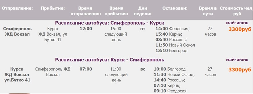 Откуда отправляются автобусы и маршрутки Курск - Симферополь?