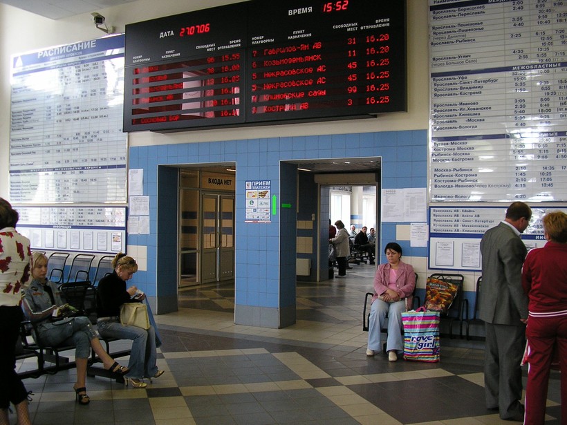 Общественный транспорт из Костромы прибывает на автостанции города Ярославль: