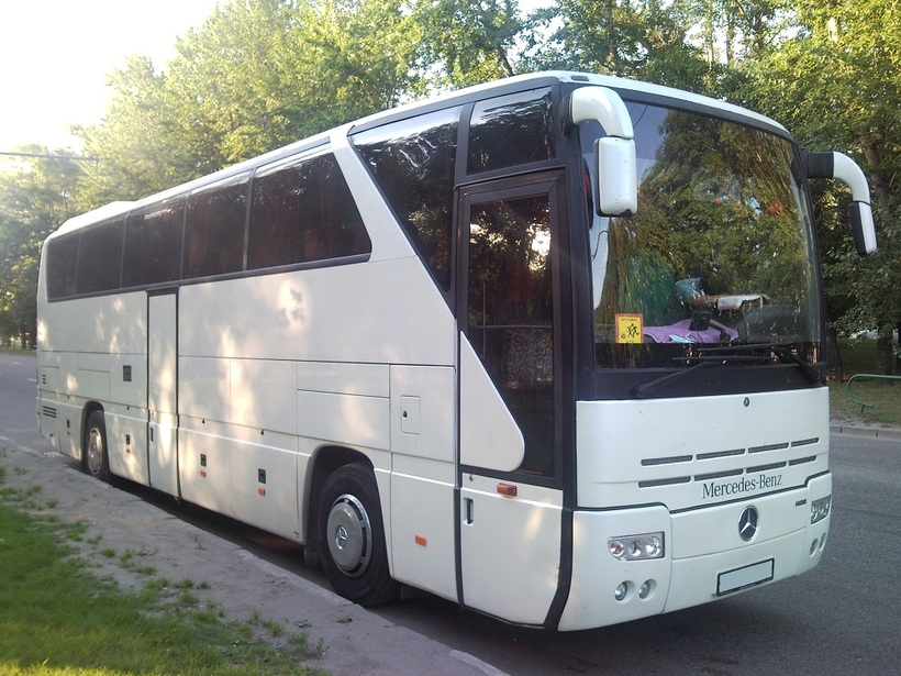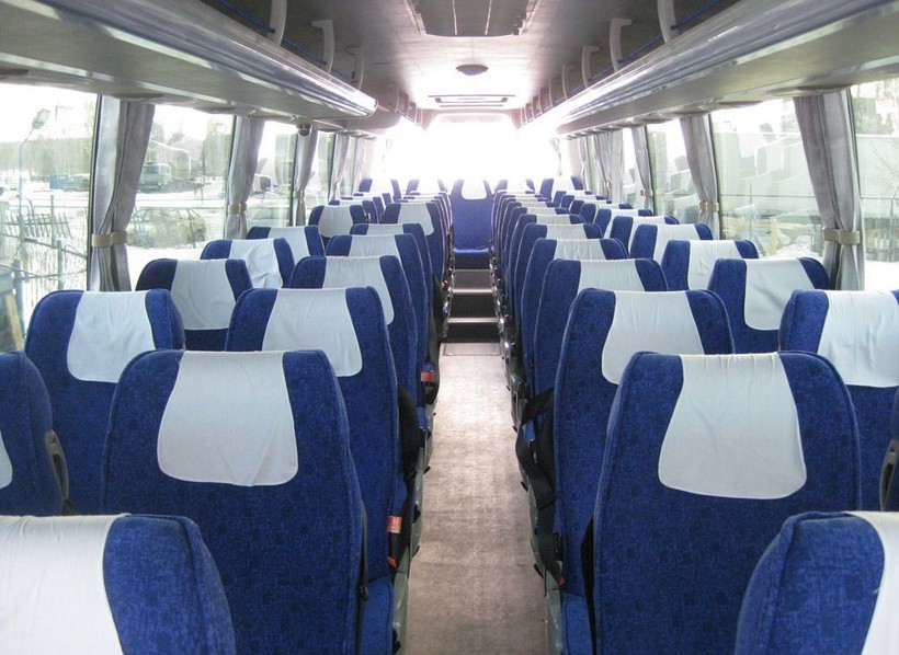 Автобус MAN, средних размеров, заметно подгулявший. В салоне стоял старенький телевизор, который было еле слышно из-за гула двигателя. Кресла вибрировали постоянно, свет в салоне тусклый, окна дребезжали. Почти каждую кочку на дороге ощущал, такое впечатление, что амортизаторов у автобуса не было вовсе. Водитель с кем-то постоянно говорил по телефону, матерясь чуть ли не на весь салон.