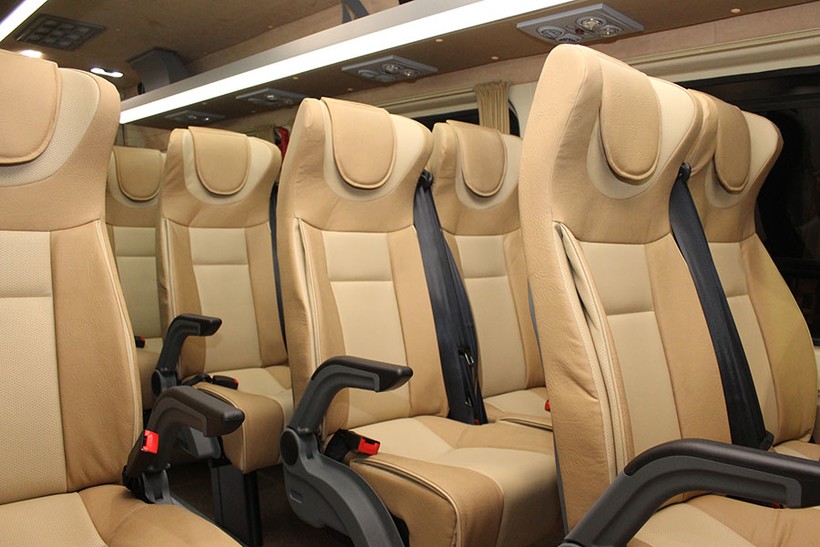 - мягкие пассажирские сидения с высокими подголовниками (кресла, как в туристических автобусах Неопланах);