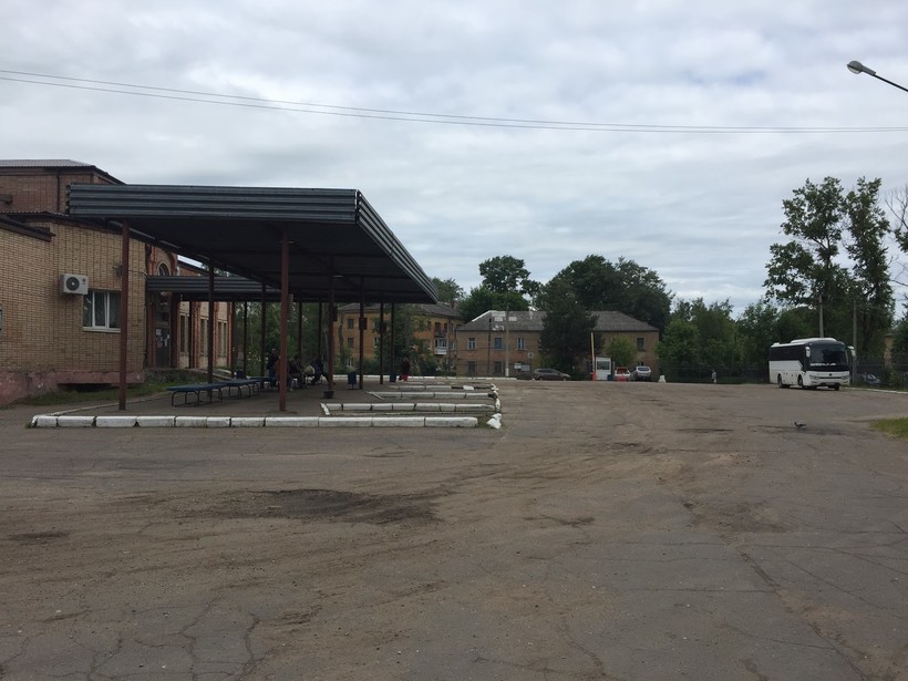 Общественный транспорт из Москвы прибывает на автостанцию Ржев города Ржев.