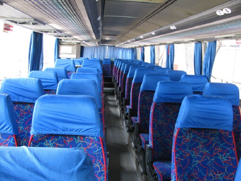 К назначенному времени прибыл по адресу Ореховый бульвар, 24, корпус 1Г, там находится автостанция "Красногвардейская", рядом с одноименной станцией метро. На платформе уже осуществлялась посадка в белый Neoplan, на входе стоял стюард и проверял посадочные билеты. Автобус старенький, но в хорошем состоянии. Салон чистый, на полу застлана дорожка, кресла комфортабельные, с откидным механизмом, чистыми чехлами, удобными подлокотниками. Над головой удобная полка для мелких вещей, имеются крючки для верхней одежды, на входе широкая плазма, в салоне работал кондиционер и WiFi. Отправились без задержек.