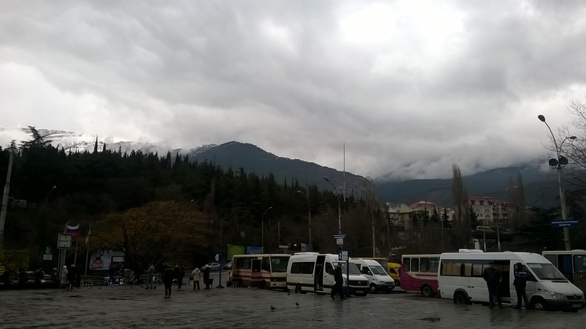 В прошлом году друзья переехали на ПМЖ в Севастополь и пригласили нас с мужем в гости на новогодние каникулы. Время для покупки билетов на самолет или государственный автотранспорт было не подходящим, поэтому решили ехать с частным перевозчиком. Автобус должен был отправиться с главного автовокзала в 14.00, в итоге уехали в 14.30, ждали опаздывающих.