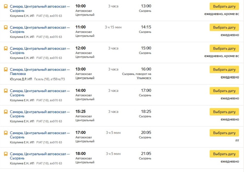 Откуда отправляются автобусы и маршрутки Самара - Сызрань?