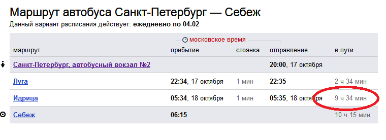 Автобус Санкт-Петербург - Себеж: будьте осторожны с Яндекс.Расписаниями