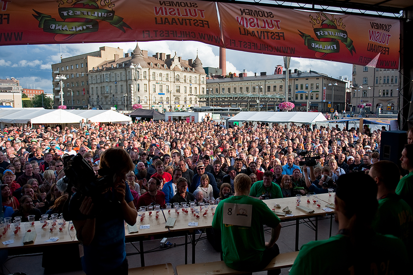 Посчастливилось мне в прошлом году посетить один весьма любопытный фестиваль – Chilifest. Он проходит в Финляндии раз в несколько лет. Я острые блюда стараюсь обходить стороной, но на любителей жгучей еды посмотреть было чрезвычайно занятно. Солидные, явно опытные мужчины ели перец, обливаясь потом и умываясь реками слёз.