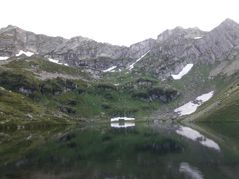 Озеро Мзы поразительно спокойно, величественно. На его склонах даже в жаркий день лежит снег. У вас есть уникальная возможность – в разгар лета поиграть в снежки.