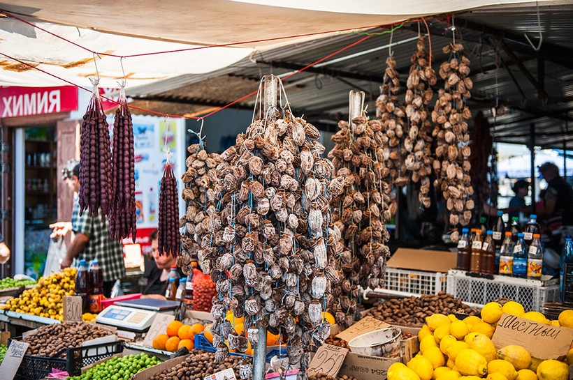 исключение составляет главный и крупнейший рынок страны в Сухуме. Этот столичный рынок пользуется популярностью и у местного населения. поэтому продукты здесь самые хорошие. летом, помимо, традиционных абхазских сладостей и алкоголя, здесь можно приобрести мед, сыр, всевозможные овощи и фрукты. Есть палатки с изделиями ручной работы, это керамические изделия, и изделия из металла, украшения или вязанные вещи.