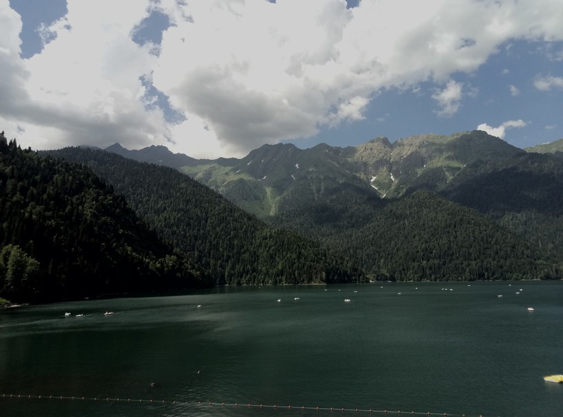 Я считаю основными природными достопримечательностями Голубое озеро (пустая трата времени в туристический сезон, на мой взгляд), Гегский водопад (место съемки советского фильма "Приключения Шерлока Холмса и доктора Ватсона") и озеро Рица. А бонусом к ним у нас шли Альпийские луга, которые поразили своей красотой. На мой взгляд эти места прекрасны в любую погоду.