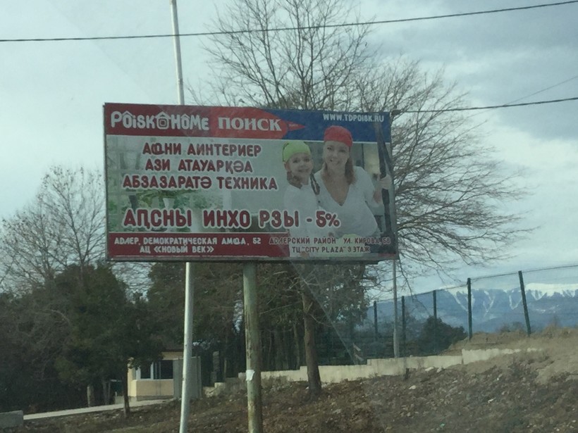 Государственном языком здесь считается абхзаский, а страна Абхазия на местном языке звучит как "Апсны". В городах часто могут встретится вывески магазинов или названия улиц на местном языке, хотя последние как правило дублируются на русском. Ведь русский - второй государственный язык в стране, им свободно владеет все население Абхазии.