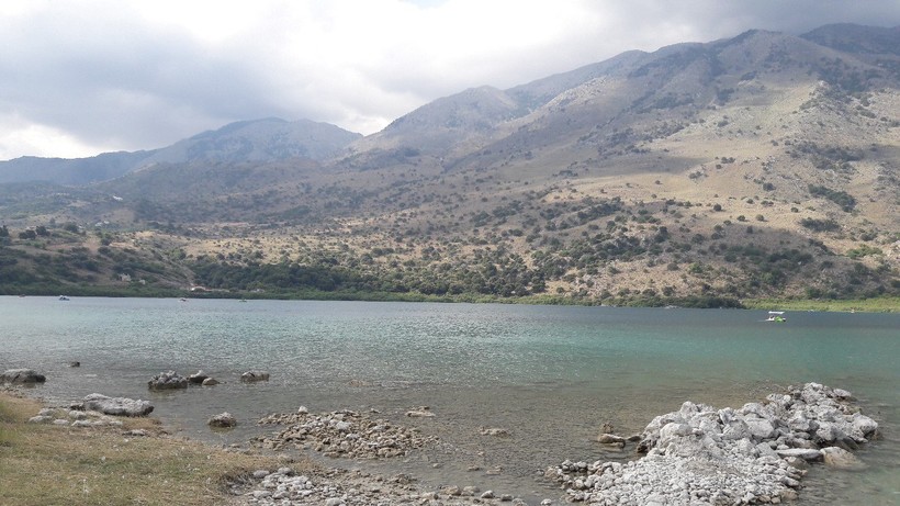 Первой точкой трипа стало пресное озеро Курнас в горах на границе областей Ретимно и Ханья. До него мы ехали чуть больше двух часов. Весьма красивое место. Туристов было немного. Говорят, там водятся большие черепахи, и чтобы их увидеть – нужно поманить хлебушком. Однако мы черепах не встретили.