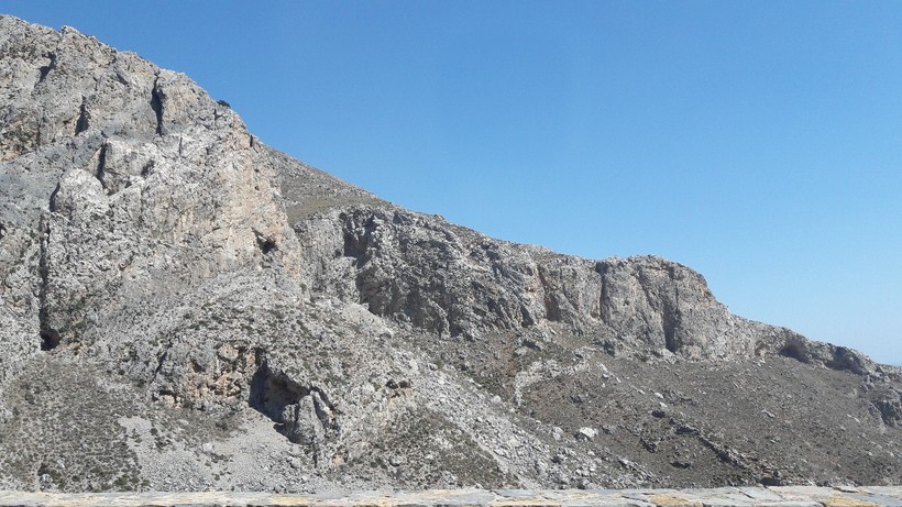 Следующим пунктом назначения было побережье Средиземного моря. Идея искупаться в двух разных морях за день двигала нас вперед. Для того, чтобы попасть на другую сторону Крита, нужно было проехать через горный перевал. И вот здесь начались сложности. Узкие маленькие серпантины бесконечно долго вели нас вверх, а потом так же долго вниз. Хоть я и не страдаю головокружениями и тошнотой в дороге, но от такой трассы мне тоже стало плохо. Все думали, как бы побыстрее спуститься на равнину. Однако пейзажи вокруг были очень живописными. Высокие горы под 2000м над уровнем моря, скалистые пики, освещающее их солнышко – все это являло собой замечательную картину.