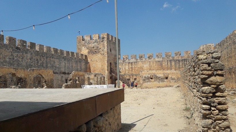 Далее мы снова перебрались на сторону Крита, омываемую Эгейским морем. Там мы посетили крепость Кулес, которой уже больше пяти веков. Честно говоря, смотреть там особо нечего. И 2 евро за вход внутрь тоже можно не платить. Все прекрасно видно, если обойти крепость по периметру снаружи. Это займет не более пяти минут.